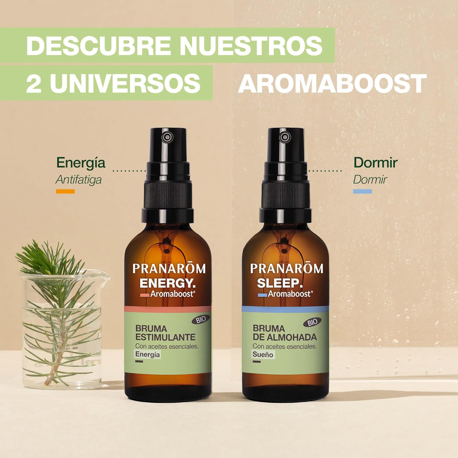 Entre las opciones naturales más efectivas está el Pranarôm Aromaboost Sleep Bio, una bruma de vaporización elaborada con aceites esenciales ecológicos de pino silvestre y manzanilla noble.